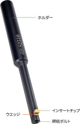 - インサートチップの位置固定機能により、切削加工中に発生するバイトの位置離脱現象を改善